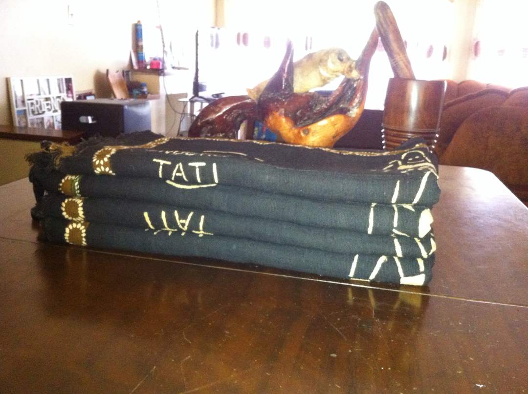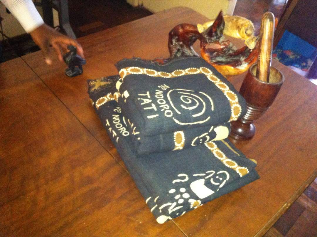 This is our own brand of handwoven and painted using drawings from our founders own sisters artwork! Enjoy Tatis art on Dogon tribe indigo from Mali.